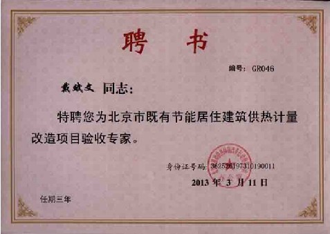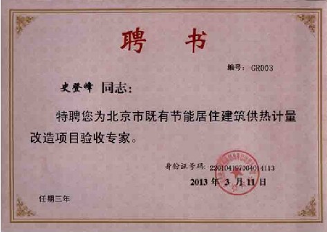 為此,北京城建科技促進(jìn)會(huì)通過公開征集和審核的方式確定選定“北京既有節(jié)能居住建筑供熱計(jì)量改造項(xiàng)目驗(yàn)收專家”。非常榮幸,碩人時(shí)代戴總、史總和鄧總(排名不分先后)獲此殊榮,這將促使公司對(duì)供熱計(jì)量工作做出更大的貢獻(xiàn)。