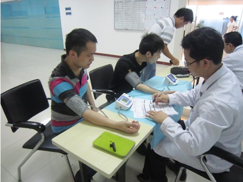 2013年4月20日周六,合作醫(yī)療機(jī)構(gòu)的醫(yī)生攜帶檢查設(shè)備,上門到公司總部為員工進(jìn)行各項(xiàng)體檢項(xiàng)目,體檢內(nèi)容有內(nèi)外科、血常規(guī)、心電圖、B超等十多項(xiàng)檢查項(xiàng)目,體檢員工自覺有序的排隊(duì)參加各項(xiàng)檢查,并不時(shí)提出相關(guān)健康問題,醫(yī)生給予相應(yīng)的解答和建議,醫(yī)院很貼心地為我們準(zhǔn)備了早餐,在檢查完畢后可自行到餐廳就餐,為我們空腹來體檢的同事們提供了良好的后勤保障。