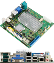 Intel Atom N270, 945GSE+ICH7M, 1 x DDR2 SODIMM, 1 x Intel GbE LAN, 2 x SATA, 5 x COM, DVI-I, Low profile board , DC Power |