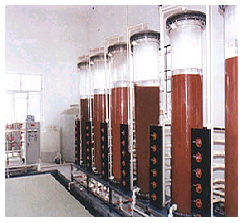 中水回用,一方面為城鎮(zhèn)供水開辟了第二水源,可大幅度降低“上水”(自來水)的消耗量;另一方面在一定程度上解決了“下水”(污水)對(duì)水源的污染問題,起到既經(jīng)濟(jì)又環(huán)保的作用。  目前中水主要用于以下兩方面:  1、生活雜用水,用于沖廁所、洗地、綠化、景觀等;  2、生產(chǎn)用水; 恒田公司在中水回用設(shè)備/工程方面,根據(jù)客戶對(duì)回用水的要求標(biāo)準(zhǔn)而采用不同的處理技術(shù),主要包括:物質(zhì)分離與生化處理、 RO反滲透、MBR生物反應(yīng)膜、離子交換、活性炭吸附等技術(shù); 離子交換法回收 離子交換法回收的目的是將溶解于水中的無機(jī)離子排除,原理說明如下:陽離子交換樹脂用氫離子(H+)來交換陽離子;而陰離子交換樹脂則利用氫氧根離子(OH-)來交換陰離子,可以靠電阻(esistivity)或?qū)щ姸?conducivity)來判斷去離子功能是否有效。離子交換樹脂與各陰陽離子的新和力強(qiáng)度如下:Ba2+>Pb2+>Sr2+>Ca2+>Ni2+>Cu2+>Co2+>Zn2+>Mg2+>Ag+>Cs+>K+>NH4+>Na+>H+>SO42->I->NO3->NO2->Cl->HCO3->OH->F-