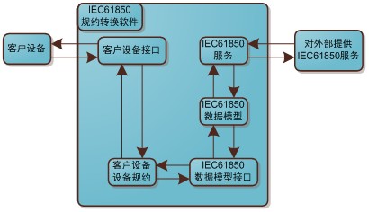 這是雙向的數(shù)據(jù)服務(wù),一是將電力設(shè)備的規(guī)約數(shù)據(jù)轉(zhuǎn)換為IEC61850服務(wù)數(shù)據(jù)提供給客戶端;二是接收客戶端的數(shù)據(jù)和控制指令,將其轉(zhuǎn)換為電力設(shè)備的規(guī)約數(shù)據(jù),并提供給電力設(shè)備。這里客戶端可以是IEC61850服務(wù)的接收端,也可以是IEC61850服務(wù)的控制端。