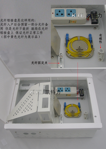 標(biāo)準(zhǔn)配置:光纖固定夾,光纖熔接盤,1位多功能插排,ONU安裝支架