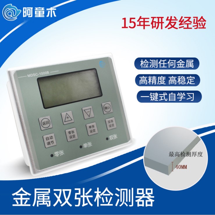 阿童木MD1000B系列金屬雙張檢測器 MDSC-1000B是阿童木(廣州)智能科技有限公司自主研發(fā)、生產(chǎn)的金屬雙張檢測器。 MDSC-1000B金屬雙張檢測器最通俗的說法就是區(qū)分單張片和雙張片,保護下工位儀器不受損壞,減少生產(chǎn)損失。金屬雙張檢測器主要應(yīng)用于各行業(yè)的自動送料系統(tǒng)中,用來檢測各種金屬片料厚度差別(如鋁片、鐵片、銅片、不銹鋼片),能有效防止雙張或多張片料一起送入下一工藝環(huán)節(jié)。