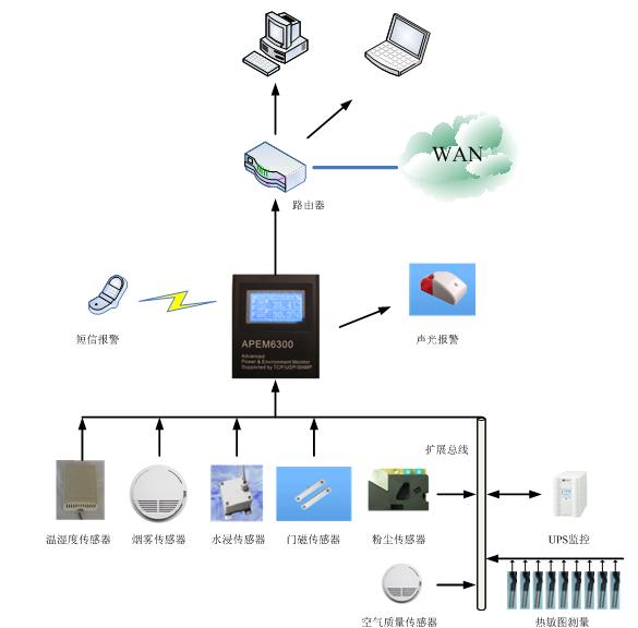 APEM6300機(jī)房網(wǎng)絡(luò)監(jiān)控系統(tǒng)簡(jiǎn)圖