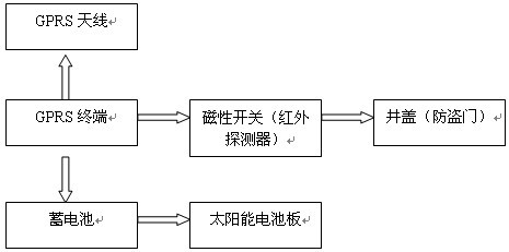 2、 磁性開關(guān):固定在井蓋(防盜門)內(nèi),主要是對井蓋(防盜門)的閉合做出反應(yīng),產(chǎn)生閉合信號發(fā)送給GPRS終端