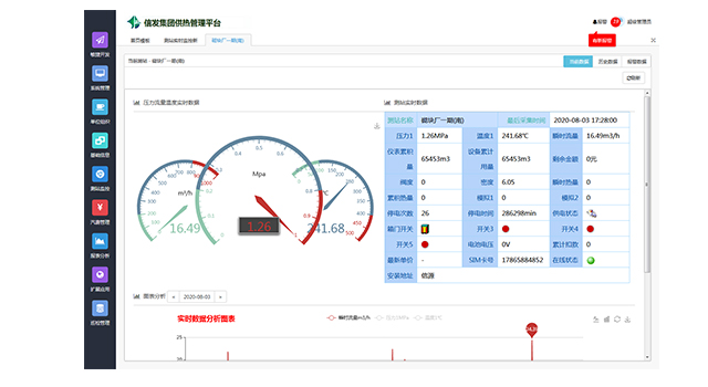 上圖是供熱管線監(jiān)測點實時監(jiān)測數(shù)據(jù)(單個點位),包括壓力、溫度、流量,以及計算信息等。